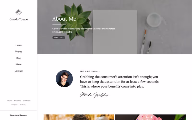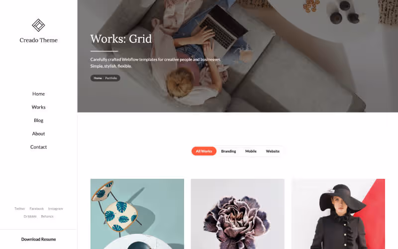 You can see beautiful animations all across the template. They makes it feels live and pleasure to use. Learn more about Webflow Interactions.