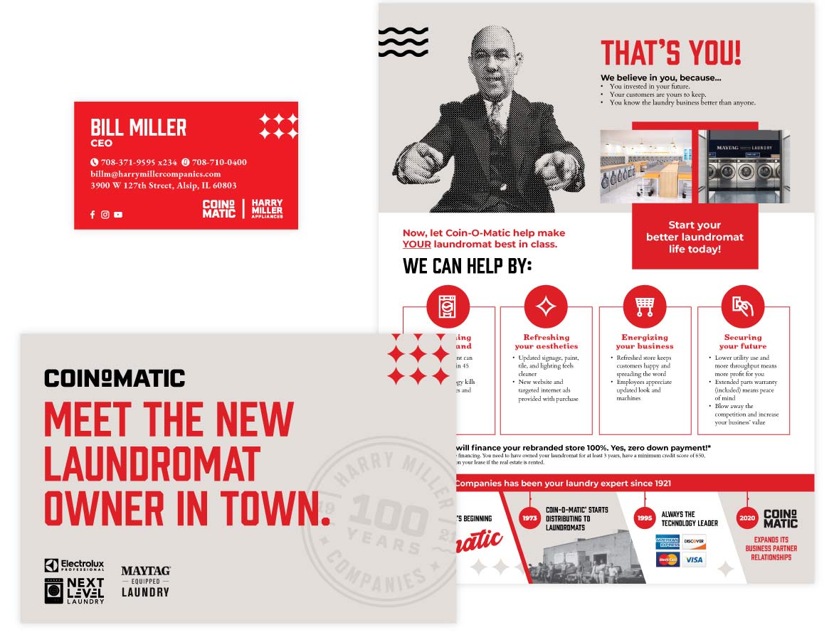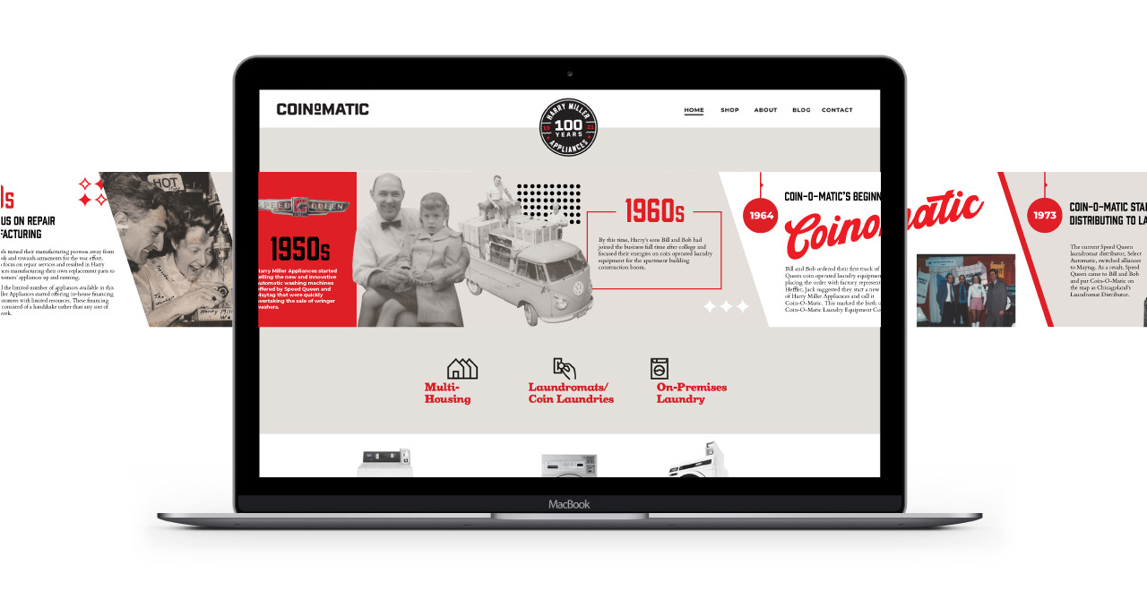 A full visual identity solution was developed for the Harry Miller family of brands. This included Harry Miller appliances as well as Coin-O-Matic that now share a singular visual identity to better resonate across residential and commercial offerings. We leveraged historic brand colors, retro typography with modern styled layouts, and a proper mix of historic and modern photos to make everyone feel like their part of the legacy. Since a brand is much deeper than the visual identity, we're continuing to work with the company's leadership team on future brand-lead marketing and promotional efforts.